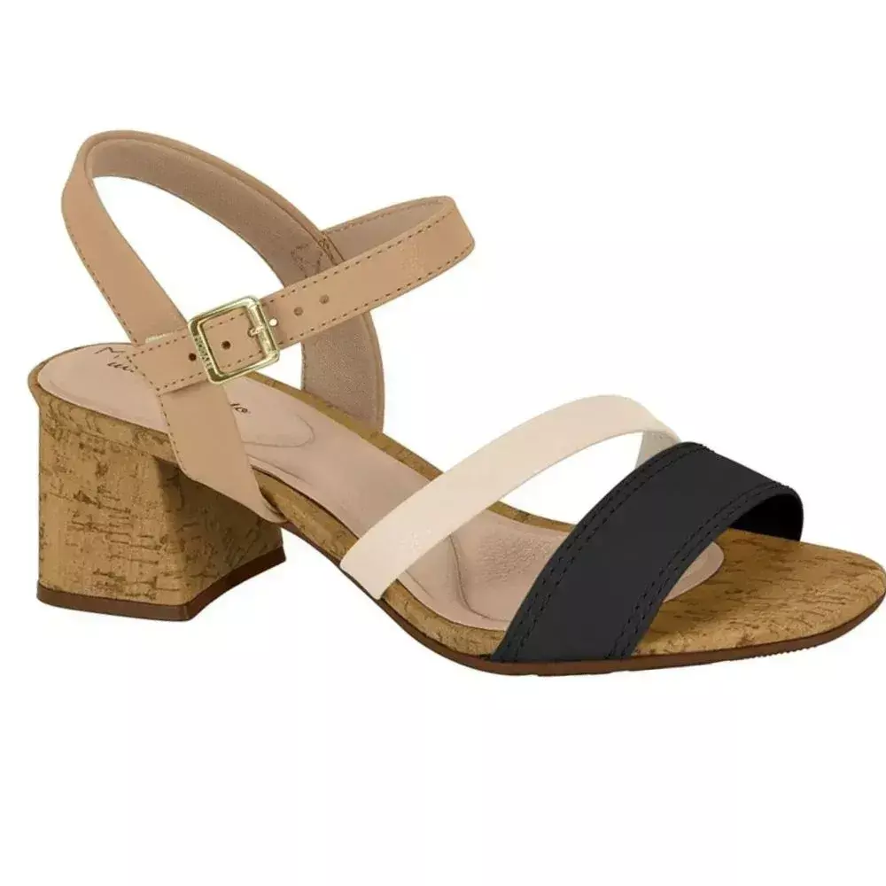 Modare • Sandália Salto Bloco Médio Napa Floather Nature Cortiça New Plus
